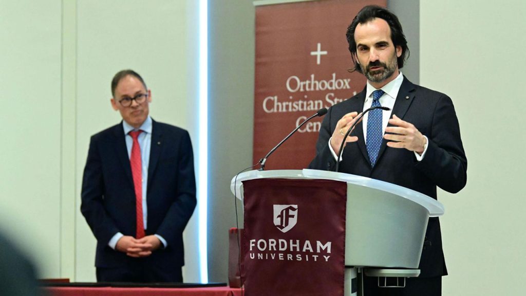 Fordham’s Orthodox Christian Studies Center will be honored for its progressive, inspiring programming on Nov. 14 at the Jessie Banks Foundation’s 21st Annual Scholarship Awards Gala. The foundation, which grants tuition assistance to first-year college students, will recognize the center’s co-directors and founders: George Demacopoulos, Ph.D., Father John Meyendorff and Patterson Family Chair of Orthodox Christian Studies; and Aristotle Papanikolaou, Ph.D., Archbishop Demetrios Chair in Orthodox Theology and Culture.