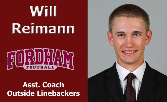 Will Reimann, a four-year student assistant coach at Fordham, was named the outside linebackers coach for the Rams it was announced today by head coach Joe Moorhead.