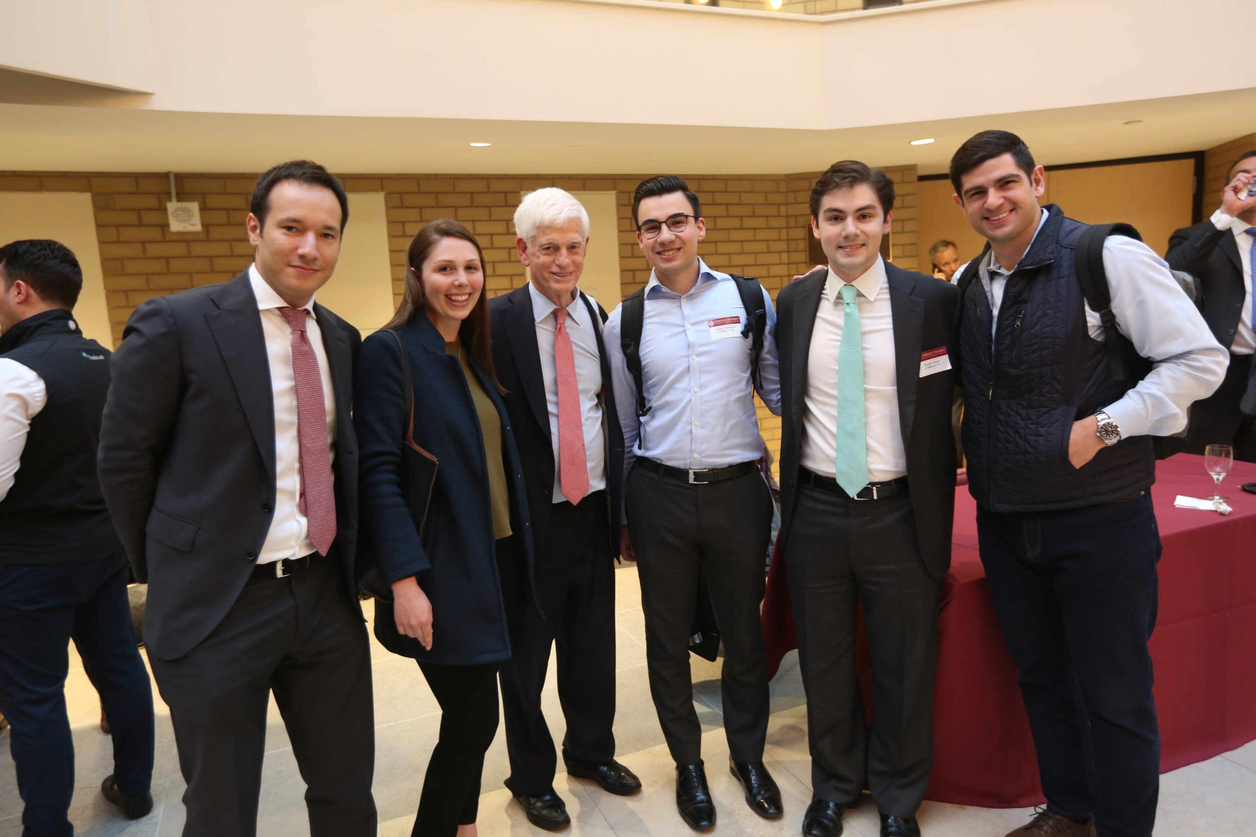 Mario Gabelli standing with students