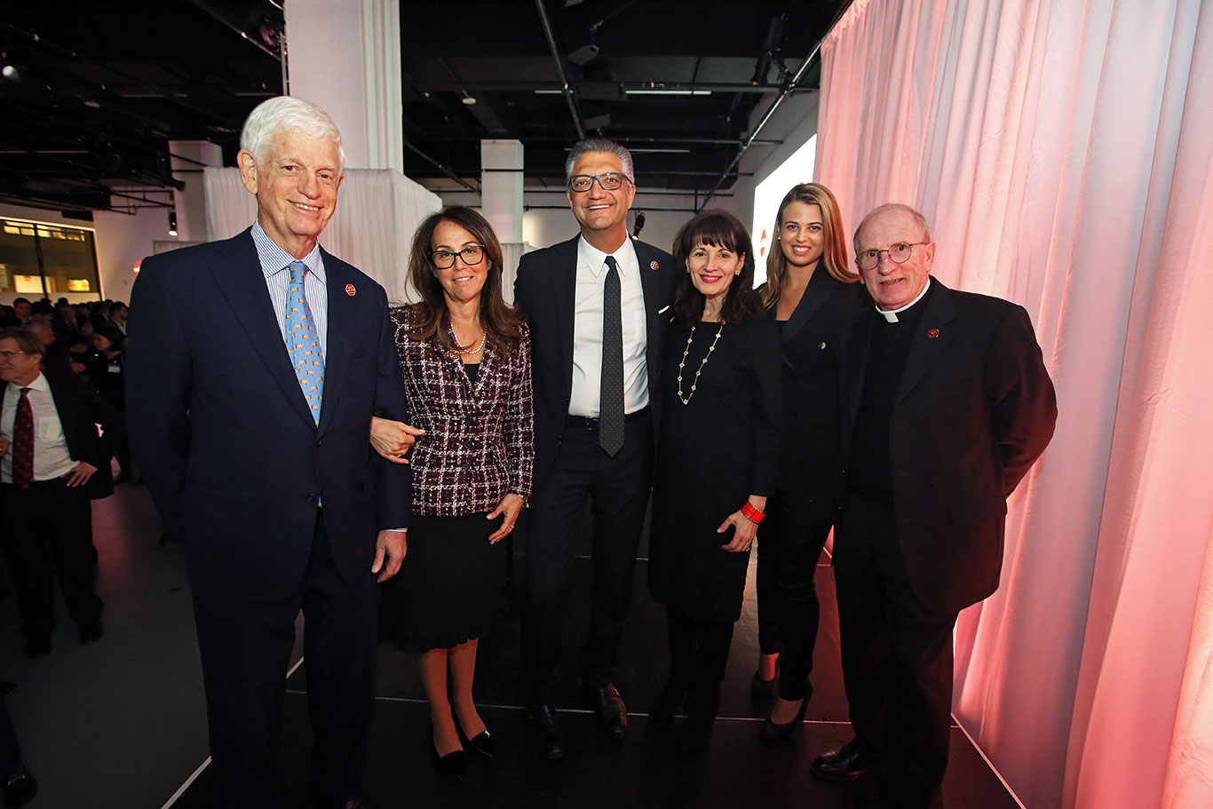 Donna Rapaccioli; Mario Gabelli; Regina Pitaro; Natalie Dowd; Manny Chirico; and Joseph M. McShane, S.J., at the Gabelli School of Business Centennial Celebration