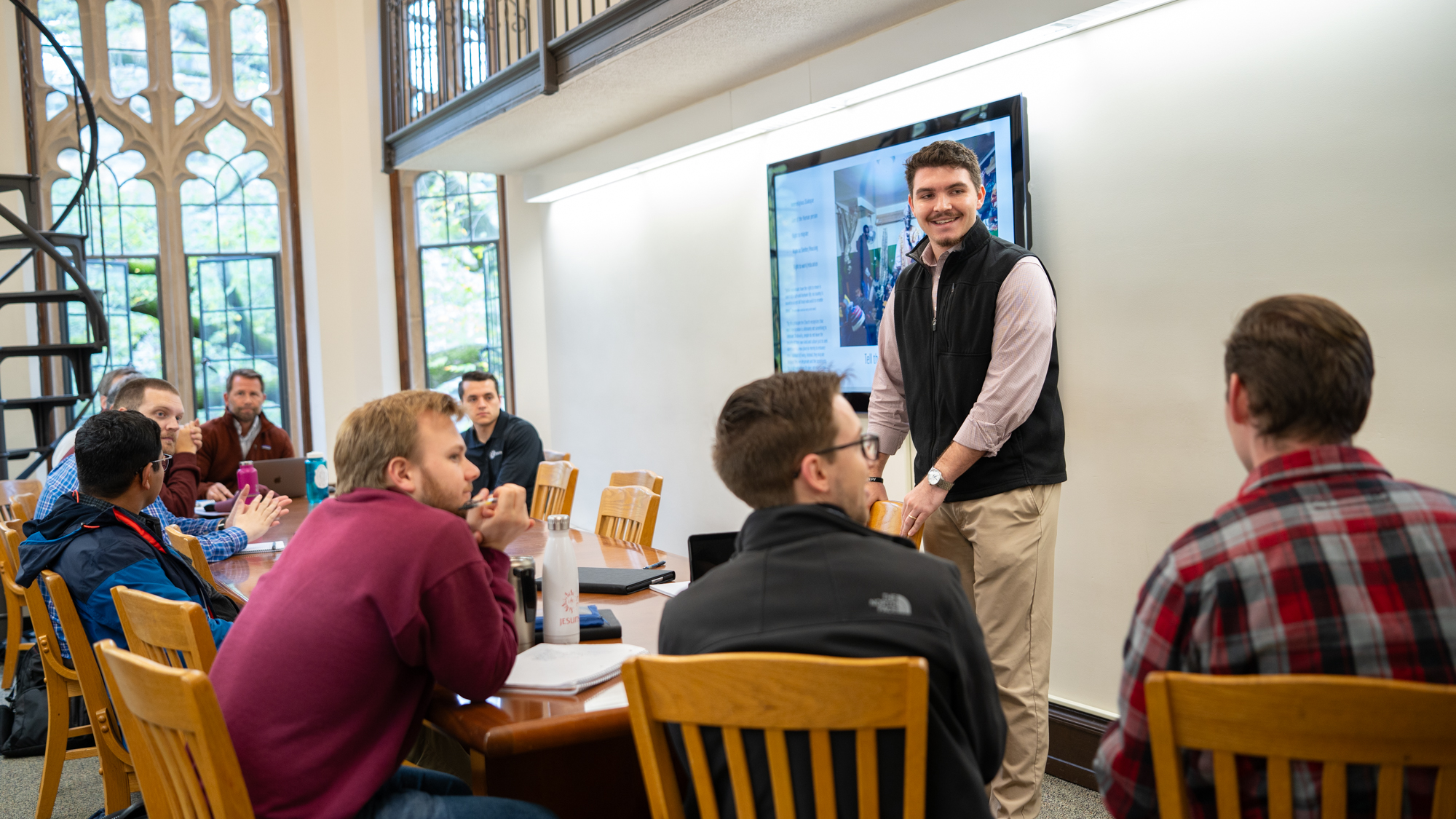 On Tuesday mornings, the Jesuits gather in a Duane Library seminar room for a core course on the complex factors affecting their work in the community. “The focus is on helping them develop the ability to interpret the historical, social, economic, and cultural context for the purposes of doing ministry,” says William Sheahan, SJ, the rector of Ciszek Hall.