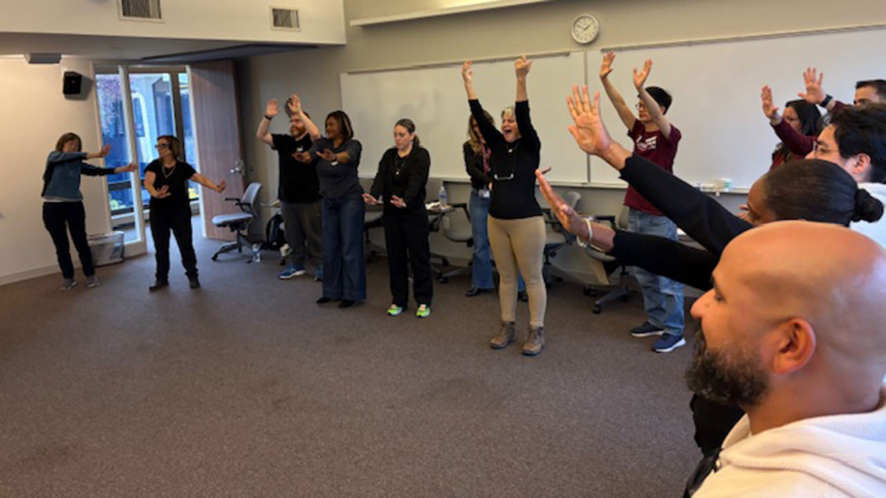 To answer that question, Cavanaugh and Parmach shared presentations on Ignatian spirituality. Participants also had time to reflect, to journal, and to move around during chair yoga, followed by what “became affectionately known as our dance party,” said Cavanagh.