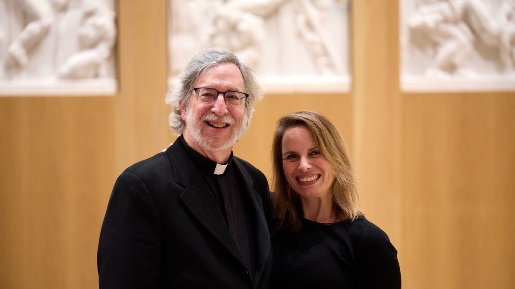 Johanna L. Francis, PhD, associate professor of economics and department chair (who could not attend) and Jim McCartin, PhD, associate professor of theology, were the inaugural winners of the Institutional Leadership and Service Award. The honor connects back to Fordham’s core principle of cura personalis—“the idea that we have a responsibility to care for the whole person, individuals, and by extension, our community,” said Dean Lang.