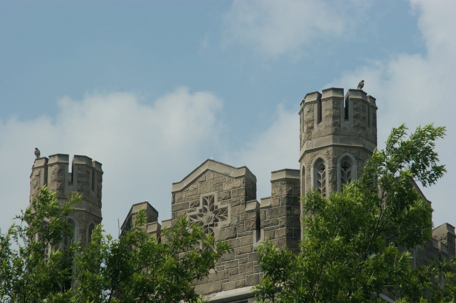 At least two red tail hawks were visiting Fordham’s Rose Hill campus on Sunday, June 27. These images of the hawks atop the Keating Hall towers were shot by Nicholas D. Lombardi, S.J., Ph.D., the associate director of online services, The Francis and Ann Curran Center for American Catholic Studies.